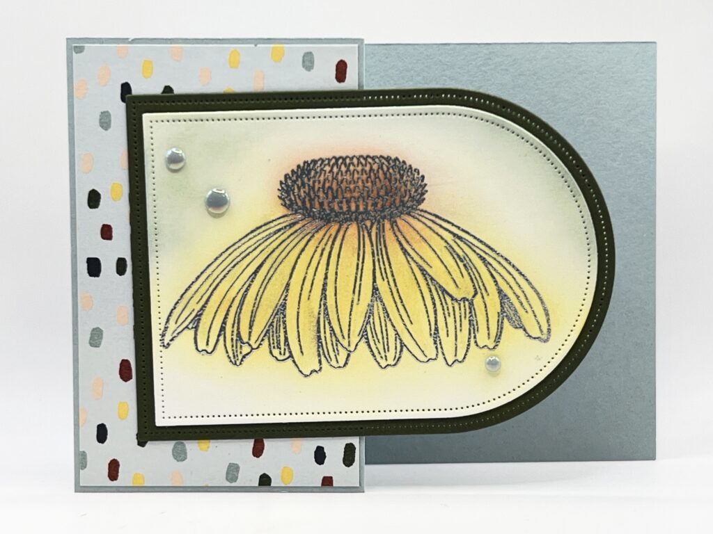 Heat embossing is one of my favorite techniques. I never get tired of watching the powder melt and come to life with that beautiful shine! For my card, I heat-embossed the coneflower in silver and then used Blending Brushes to add color over the top. The embossed image resists the ink—revealing this soft, glowing look that I just love.