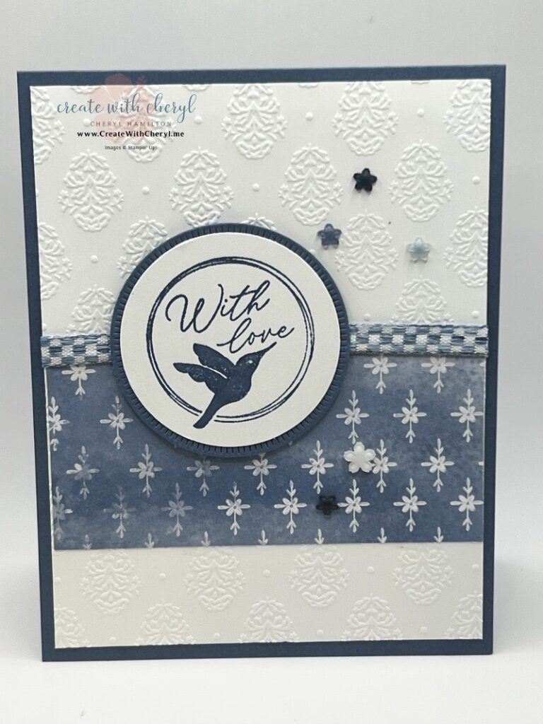 The Encircled with Love Stamp Set has all-occasion sentiments in designed circles to use all year long for thanks, birthdays, thinking of you, sympathy, and gift giving. Stamp, then just punch out using a 2″ Circle Punch.
