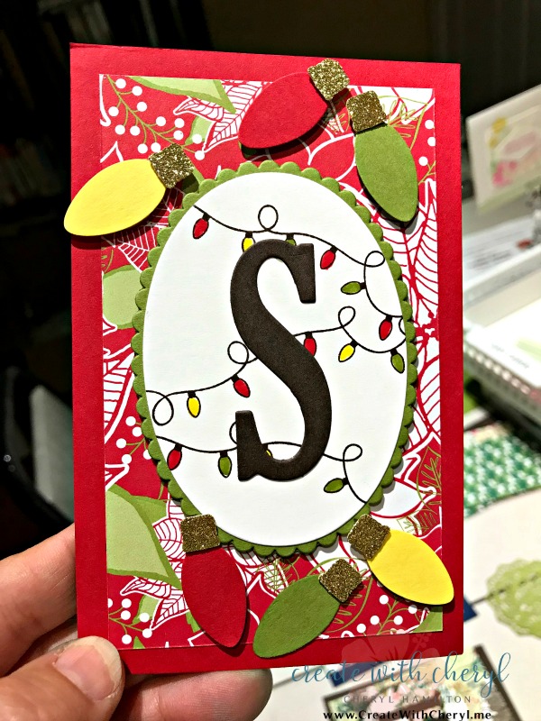 If you’d like a kit only, you’ll need to embellish it yourself. Kits are $15 and will include just 5 things… the bottom cardstock layer, Designer Series Paper that’s on top of that, the Whisper White oval with the cardstock scallop underneath, and the letters MERRY CHRISTMAS.