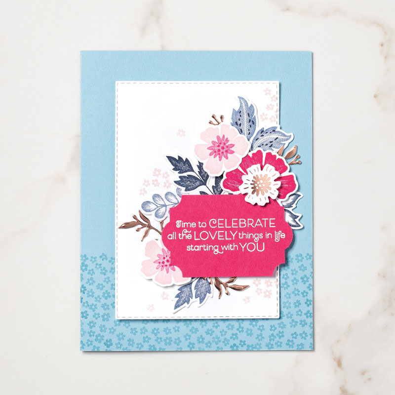 - Everything Is Rosy Photopolymer Stamp Set— 18 stamps; suggested blocks: a, b, c