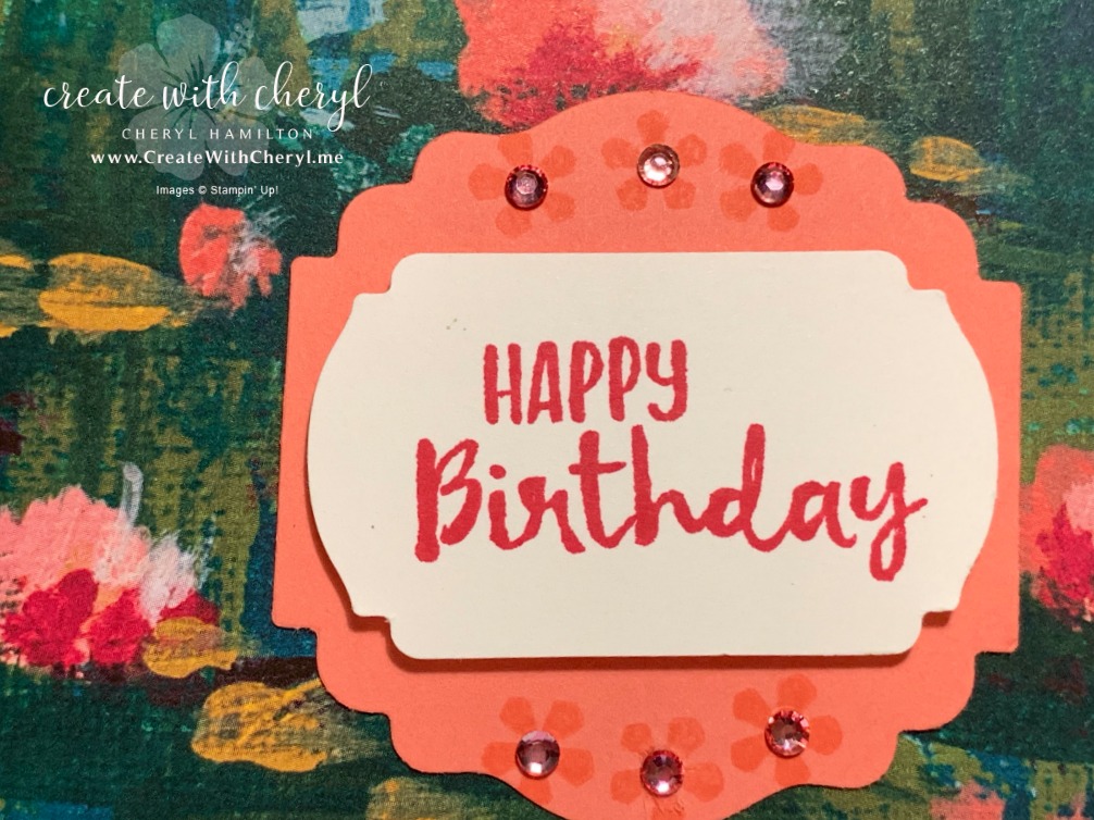 Accessories: Rhinestone Basic Jewels, Med. Melon Mambo Stampin’ Blends, Label Me Lovely Punch, Label Me Fancy Punch