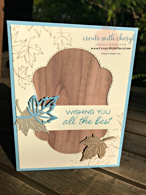 I really love the stitching in those framelits! It’s a perfect way to show off your Designer Series Papers. And the Balmy Blue is such a pretty, soft color that works well with browns & grays. I think this makes a nice masculine card.