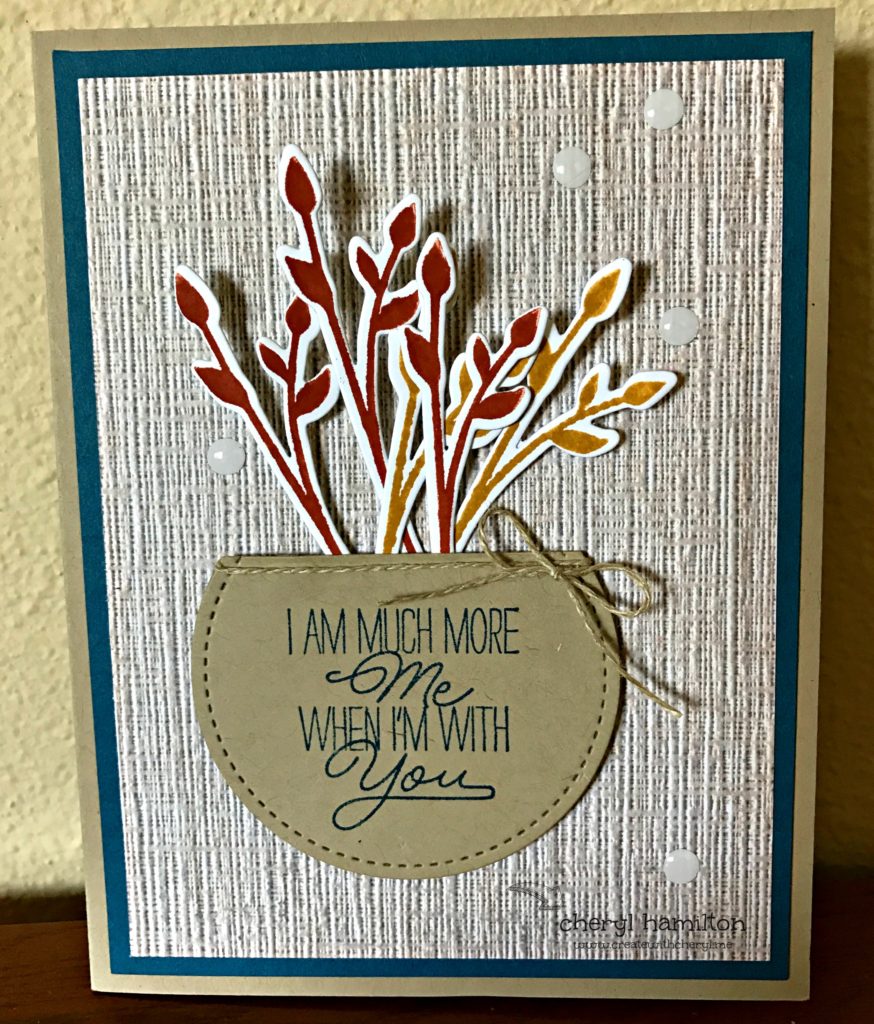I paired Crumb Cake with Dapper Denim & added Crushed Curry & Cajun Craze. The sentiment is from Layering Love.