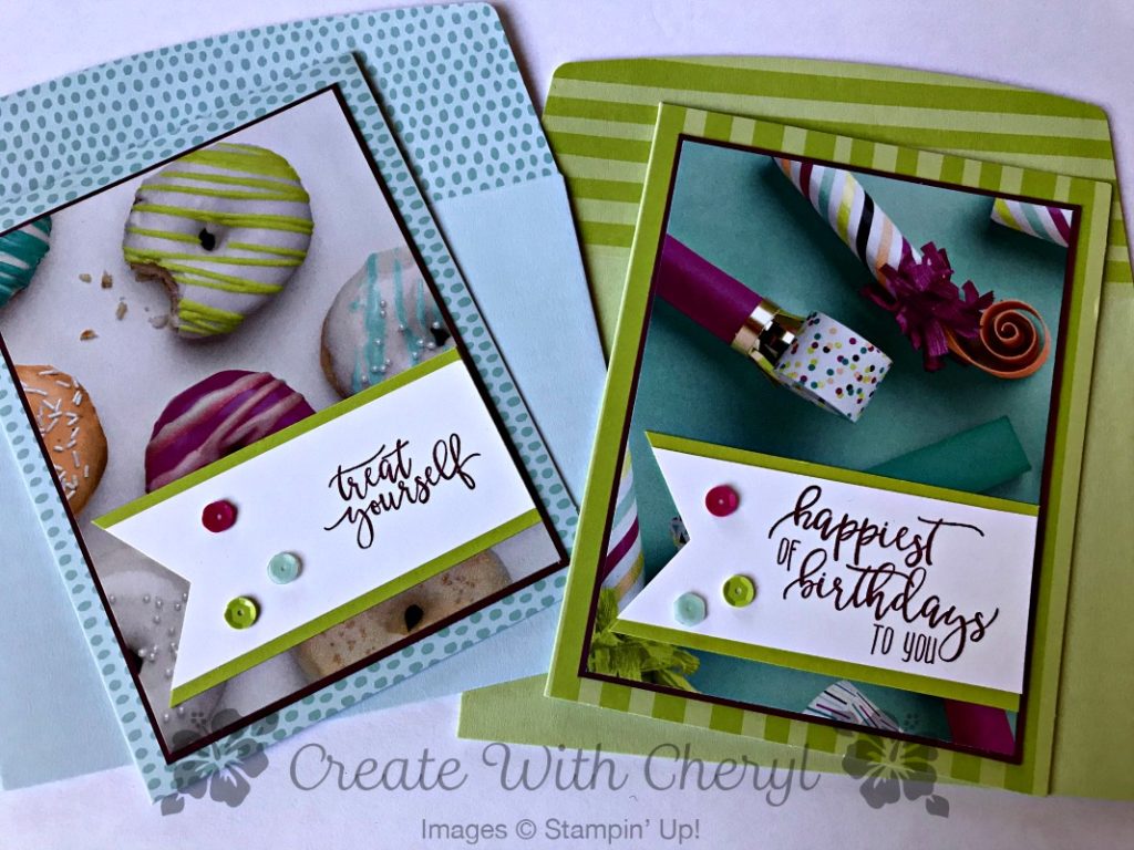 I’ve had several requests to see the projects we’ll be making this Sunday at my New Catalog Launch Party. It was hard to narrow it down- there are so many new things I just LOVE!! But I’ll show you the three cards we’ll be making here: