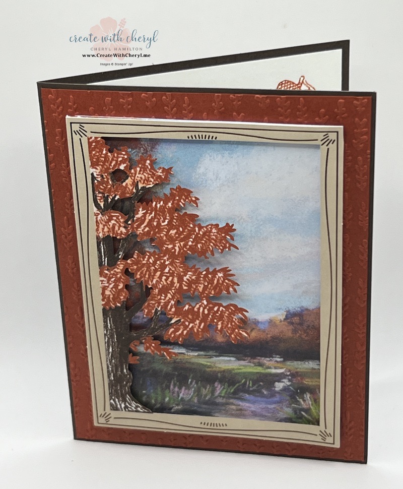This was so simple to make by just choosing a scenic Designer Series Paper for the background! This is Splendid Autumn DSP, full of breathtaking hand-painted autumn scenes.