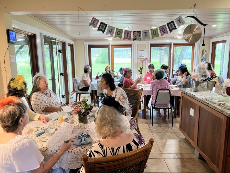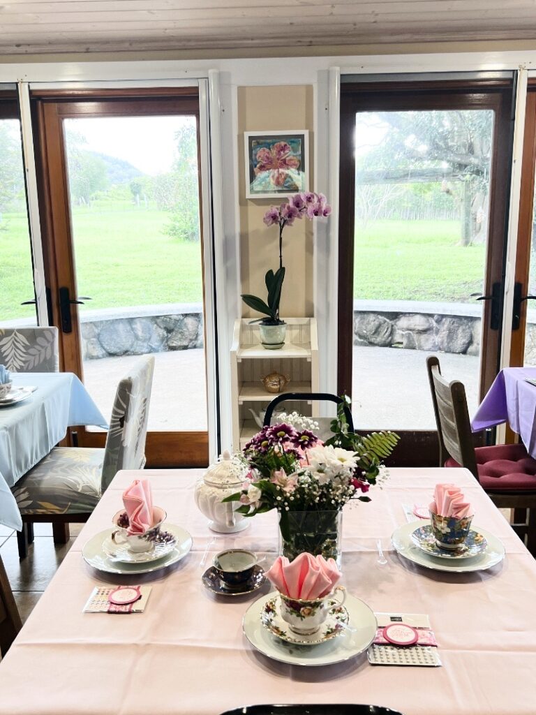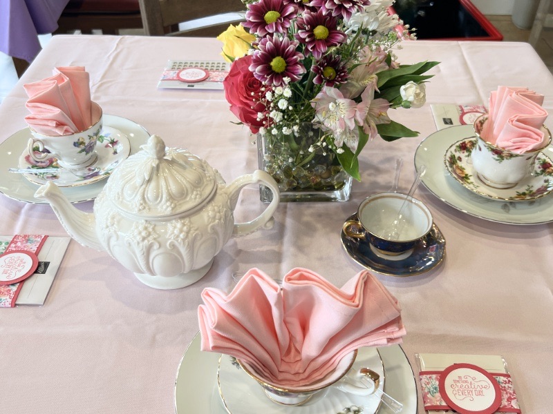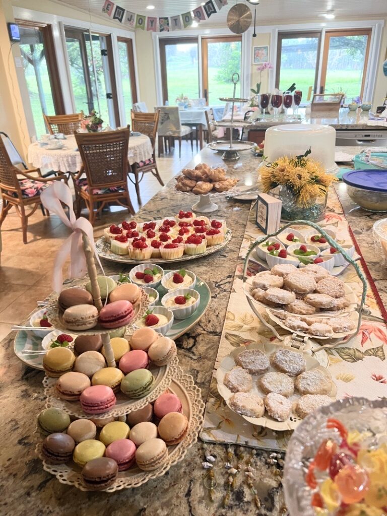 Everything came together so beautifully—colorful table settings, pretty teacups, fresh flowers, and of course, lots of delicious food. Even with the rainy weather outside, it felt bright and cheerful inside, just like a proper tea party should.