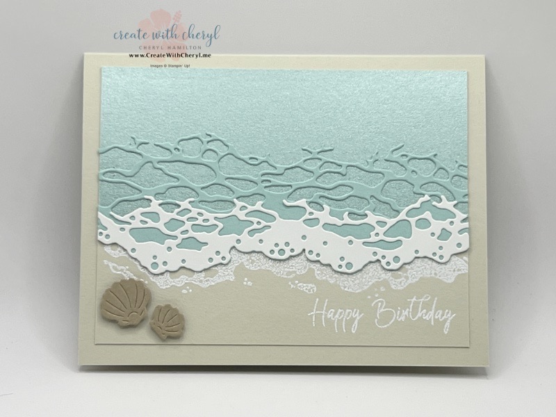 This card features the brand new Rolling Waves set (available March 3 | #167145). I absolutely love the color combination of Pool Party and Basic Beige — calm, classic, and perfect for masculine cards.