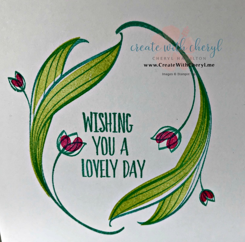 This is a retired stamp set called Lovely Wishes. See it again HERE! It uses a fun & simple technique called “2 step stamping! Basically the stamps are made so that one stamp makes an outline of an image and then another stamp colors it in. Makes it look like you’re very “artsy”! In about 2 seconds!